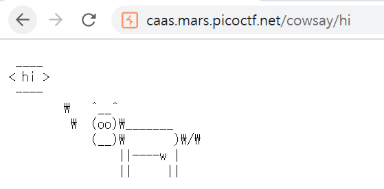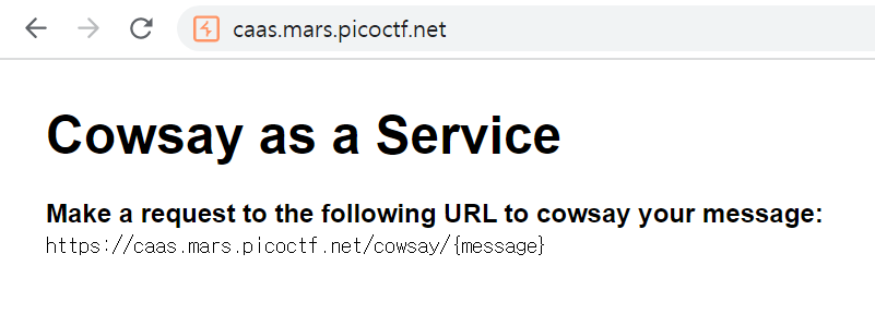 주소에 /cowsay/{하고싶은말}을 적으면 소가 말을 해준다고 한다. 아무거나 입력해보자.