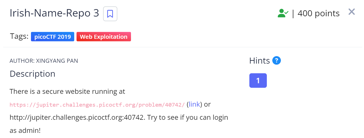 [PicoGym] picoCTF Irish-Name-Repo 3 풀이 본문