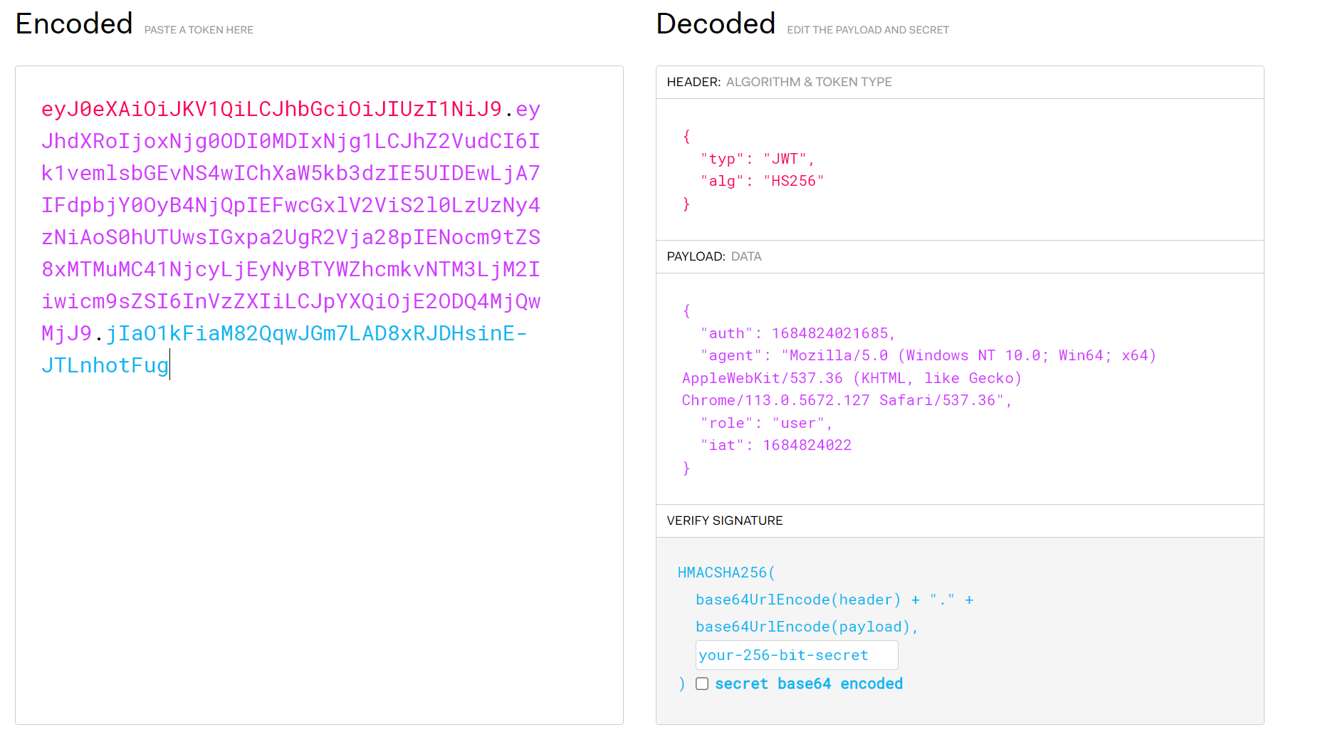 eyJ0eXAiOiJKV1QiLCJhbGciOiJIUzI1NiJ9.eyJhdXRoIjoxNjg0ODI0MDIxNjg1LCJhZ2VudCI6Ik1vemlsbGEvNS4wIChXaW5kb3dzIE5UIDEwLjA7IFdpbjY0OyB4NjQpIEFwcGxlV2ViS2l0LzUzNy4zNiAoS0hUTUwsIGxpa2UgR2Vja28pIENocm9tZS8xMTMuMC41NjcyLjEyNyBTYWZhcmkvNTM3LjM2Iiwicm9sZSI6InVzZXIiLCJpYXQiOjE2ODQ4MjQwMjJ9.jIaO1kFiaM82QqwJGm7LAD8xRJDHsinE-JTLnhotFug