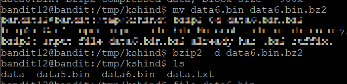 압축을 해제하면 이번엔 data6.bin이라는 파일이 나오는데 이건 bzip2로 압축이 되어있다. 그렇다면 이름 뒤에 .bz2를 붙이고 다시 bzip2 -d 명령어를 이용해서 풀면 압축이 풀릴 것이다.