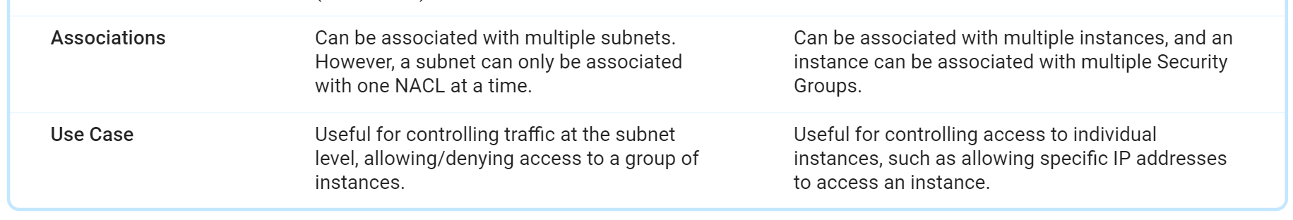 - Aws 관리자가 네트워크 세그먼트 간의 트래픽을 제어하고 서브넷 내의 리소스를 격리하여 attack vector을 줄일 수 있음