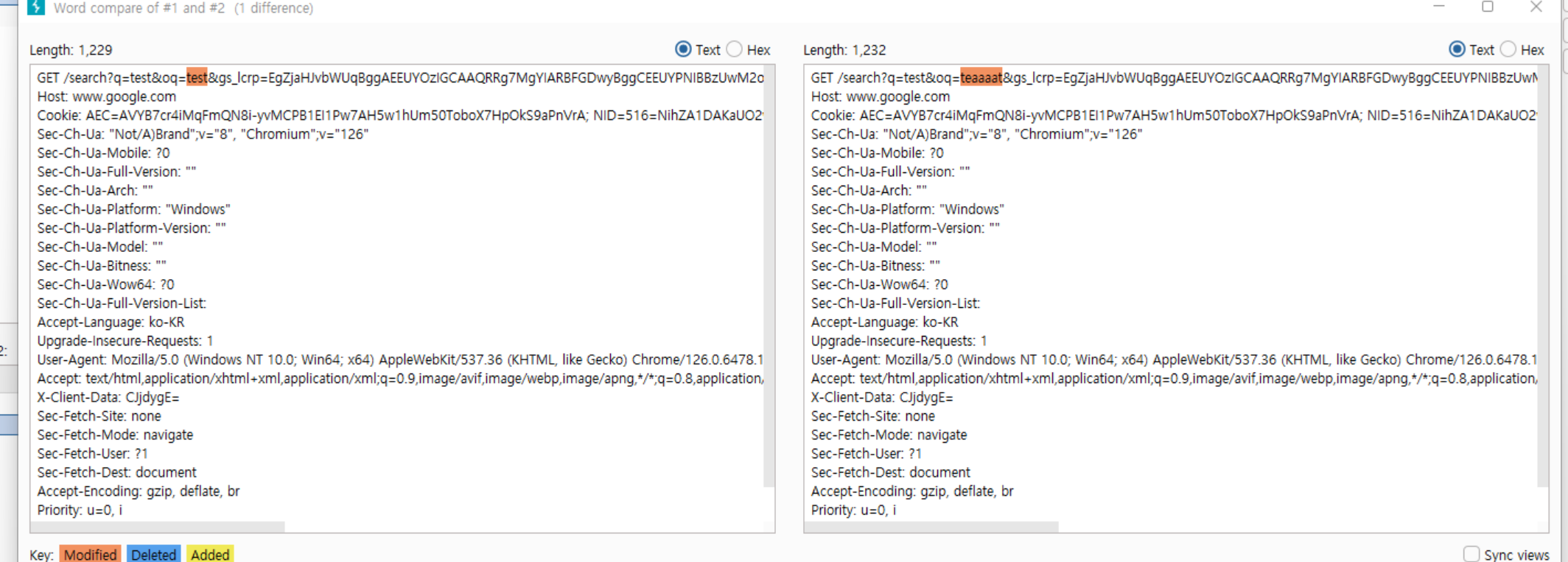 - comparer - 요청 및 응답을 비교해서 차이점을 나타내는 기능