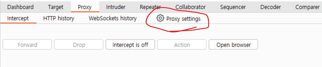 open browser 클릭 후 interceop is off를 클릭해서 가로챌 수 있음