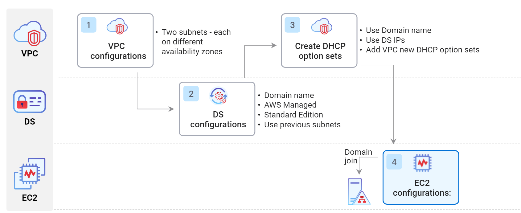 AWS Directory Service를 사용할 때, 아래의 방법에 따라 관리가 단순화될 수 있음