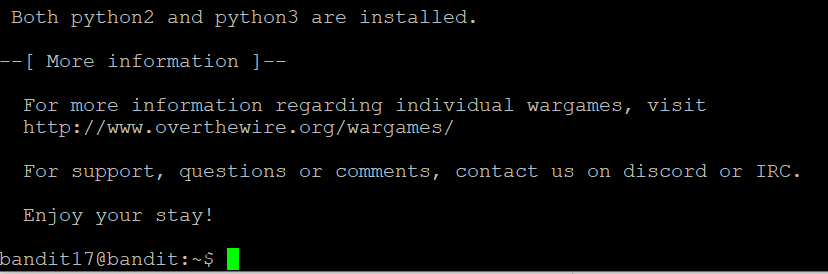 이번에는 성공적으로 bandit17로 로그인할 수 있었다.