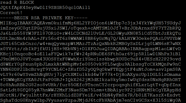 password를 입력하니까 RSA PRIVATE KEY라면서 이상한 문자열이 주르륵 뜨게 된다.