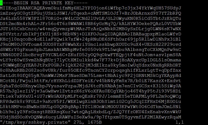 vi 명령어를 사용해서 /tmp/key/sshkey.private를 작성했다.