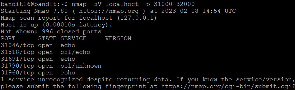 | [OverTheWire] Bandit Level 15 → Level 16 (0) | 2023.02.18 |