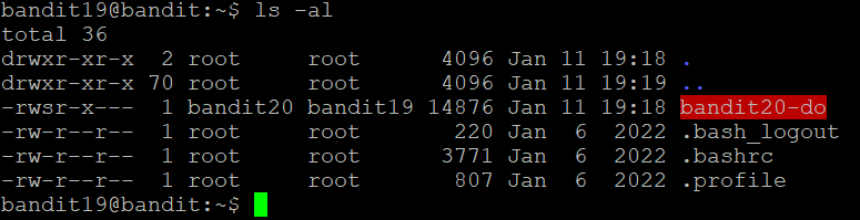 ls -al을 해보면 평소에 보던 것과 완전히 다른 느낌의 bandit20-do 파일을 볼 수 있다.