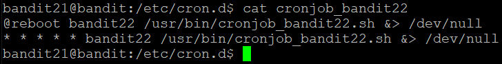 @reboot으로 시작하는 줄은 영어그대로 부팅할 때마다 /usr/bin/cronjob_bandit22.sh를 휴지통에 보낸다는 내용이다.