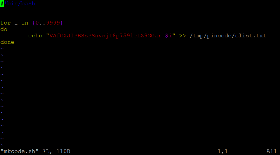 vi로 열어봤더니 성공적으로 네 자리 코드가 만들어진 것도 볼 수 있다. 이걸 이용해보자.