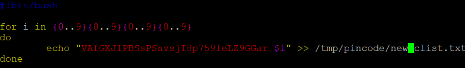 이런 식으로 password pincode가 9999까지 작성되었다.