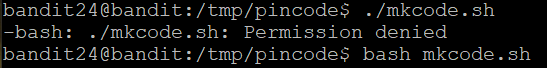 bandit24의 password와 네 자리 pincode를 띄어쓰기로 구분해서 한 줄로 입력해 달라고 한다.