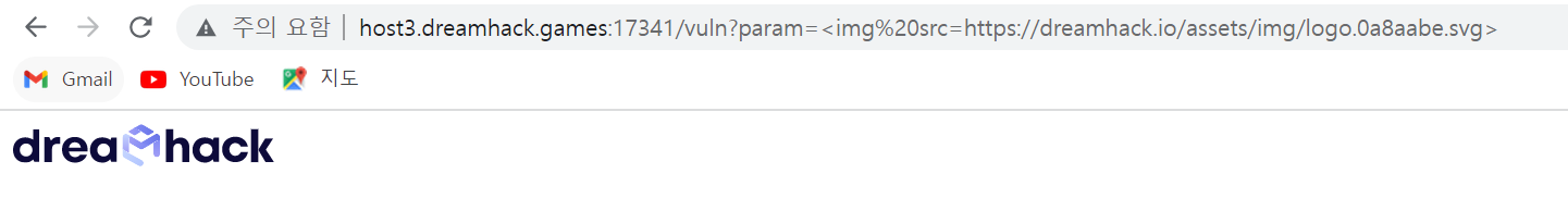 vuln page로 이동해보면 이렇게 주소에 img 스크립트와 그로 인해 출력된 이미지가 보인다.