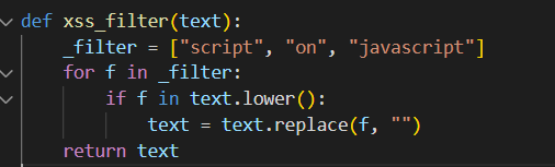 다음 문제인 xss filtering bypass advanced의 코드와 비슷할 것 같으니 자세한 코드 분석은 다음 문제에서 하겠다.