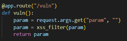 중요한 부분은 vuln엔드포인트의 xss_filter를 우회하여 작성해야 된다는 것이다.