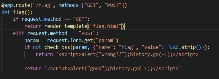wrong??을 출력 check_xss가 참을 반환하면 good 반환
