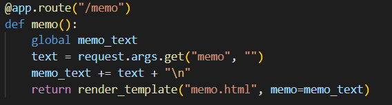 memo에 memo_text를 넣고 memo.html이 보이도록 render_template를 이용해서 반환