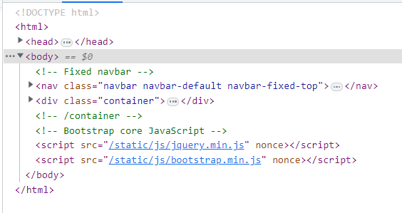 vuln 페이지의 Elements인데 스크립트로 실행되는 /static/js/jquery.min.js와 /static/js/bootstrap.min.js이 있다.