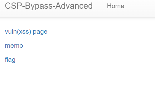 접속하면 이렇게 vuln, memo, flag 페이지를 볼 수 있다. vuln 부터 가보자.