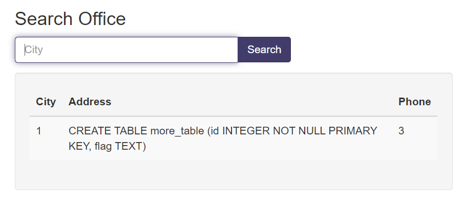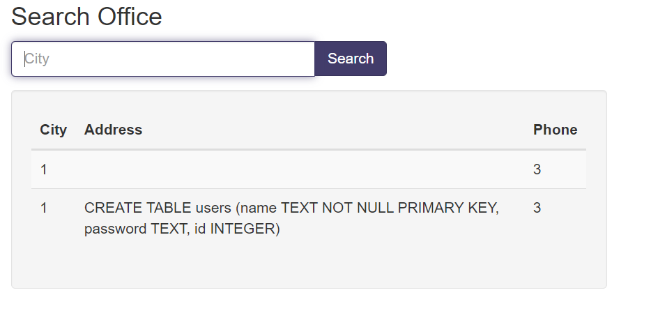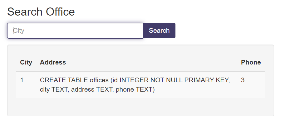 ' union select all 1, sql, 3 from sqlite_master where tbl_name='offices' --
