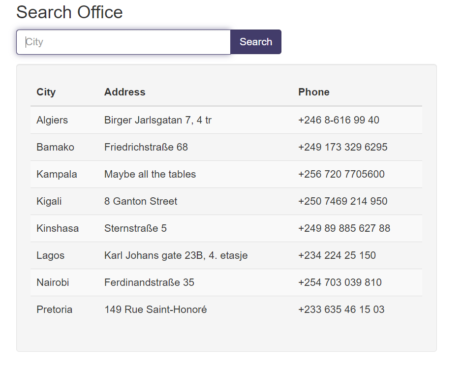 이렇게 id, city, address, phone이 있는데 이건 우리가 접속하면서 보던 그 table인 것 같다.