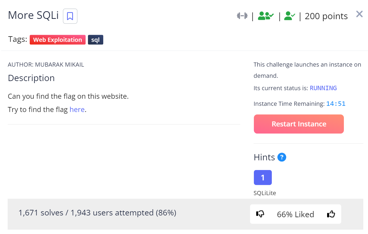 web exploitation 문제 중 그나마 쉬운 문제인 More SQLI이다... FLAG를 website에서 찾아보라고 하고 hints로는