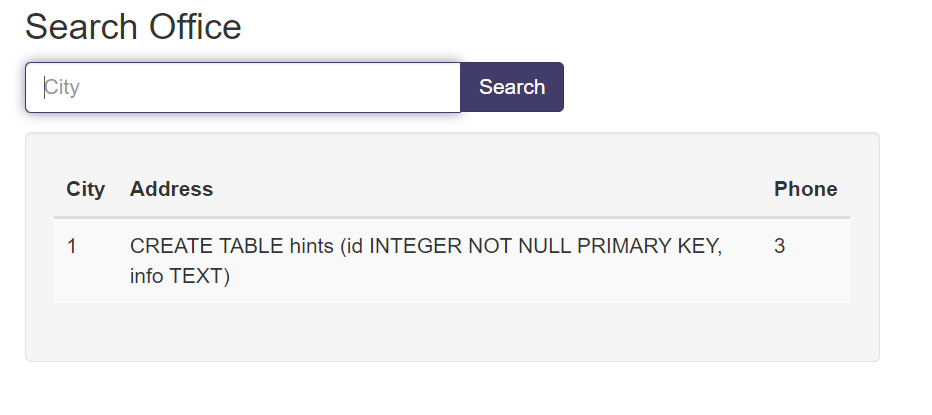 ' union select all 1, sql, 3 from sqlite_master where tbl_name='hints' --