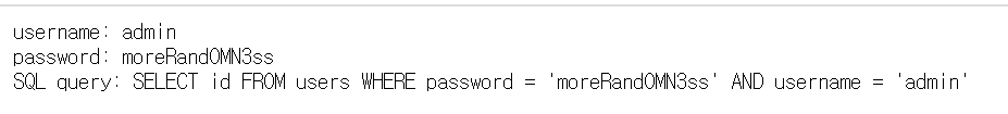 id는 admin이고 password는 moreRandOMN3ss인 것을 볼 수 있다.